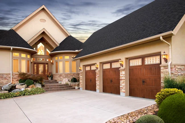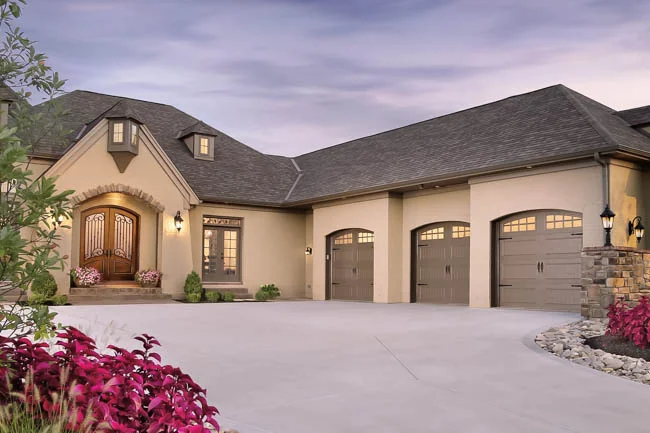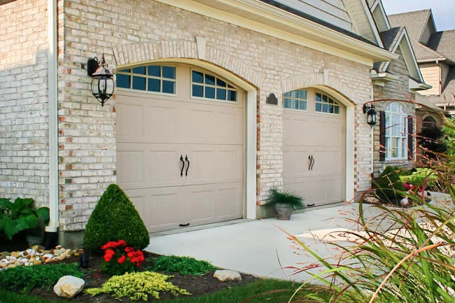 - Grooved panel steel carriage house garage doors.